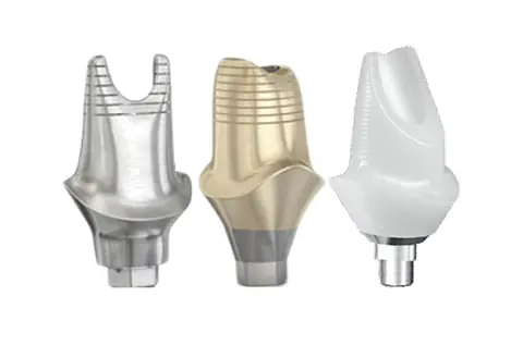 Custom designed titanium abutments to fit any implant case. Cementable or screw retained.